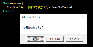 例:msgbox関数の組み込み定数vbYesNoCancel