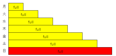 以下は月曜日にフルバックアップを取得し、毎日、差分バックアップを取得するイメージ図です。